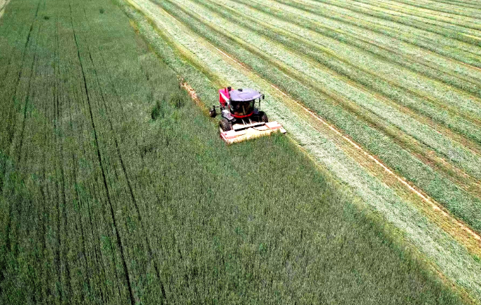初夏時節(jié),位于山西省晉中市靈石縣段純鎮(zhèn)的一片廣袤農(nóng)田里,綠油油的飼用小黑麥隨風(fēng)搖曳,收割機(jī)來回穿梭。很難想象,這里曾是一片廢棄礦山。(新華社記者魏飚)