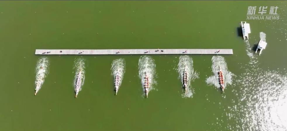 端午佳節(jié),2023太原汾河龍舟公開賽在太原水上運(yùn)動中心火熱開槳,來自北京、山東、福建、云南、寧夏等地的24支龍舟隊(duì)相約汾河,以龍舟競渡歡慶端午佳節(jié)。(新華社記者馬曉媛)