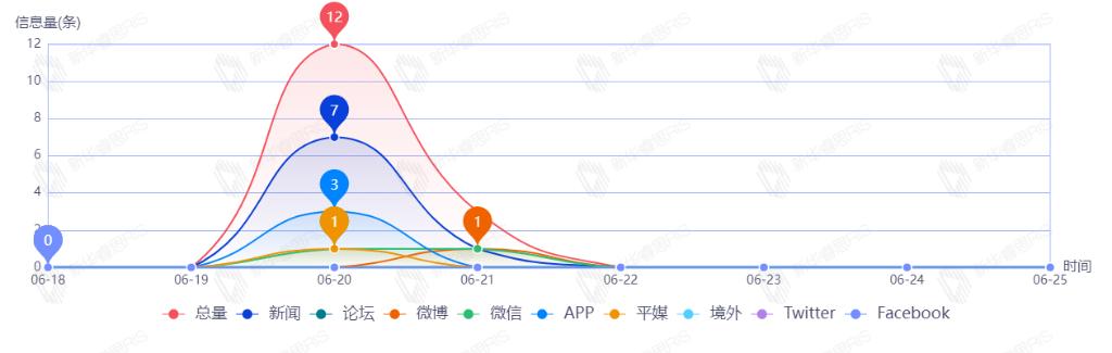 截至目前,該文章在互聯(lián)網(wǎng)上傳播總量共15篇。其中,6月20日是傳播的高峰期,共傳播12篇文章。各信源的信息發(fā)布情況中,新聞信息占比最大,其次是APP和微信,占比分別為53.33%、20.00%、13.33%。(數(shù)據(jù)來源:新華睿思數(shù)據(jù)云圖分析平臺)