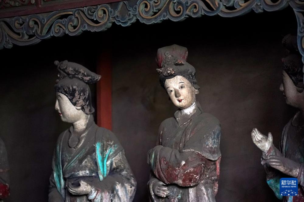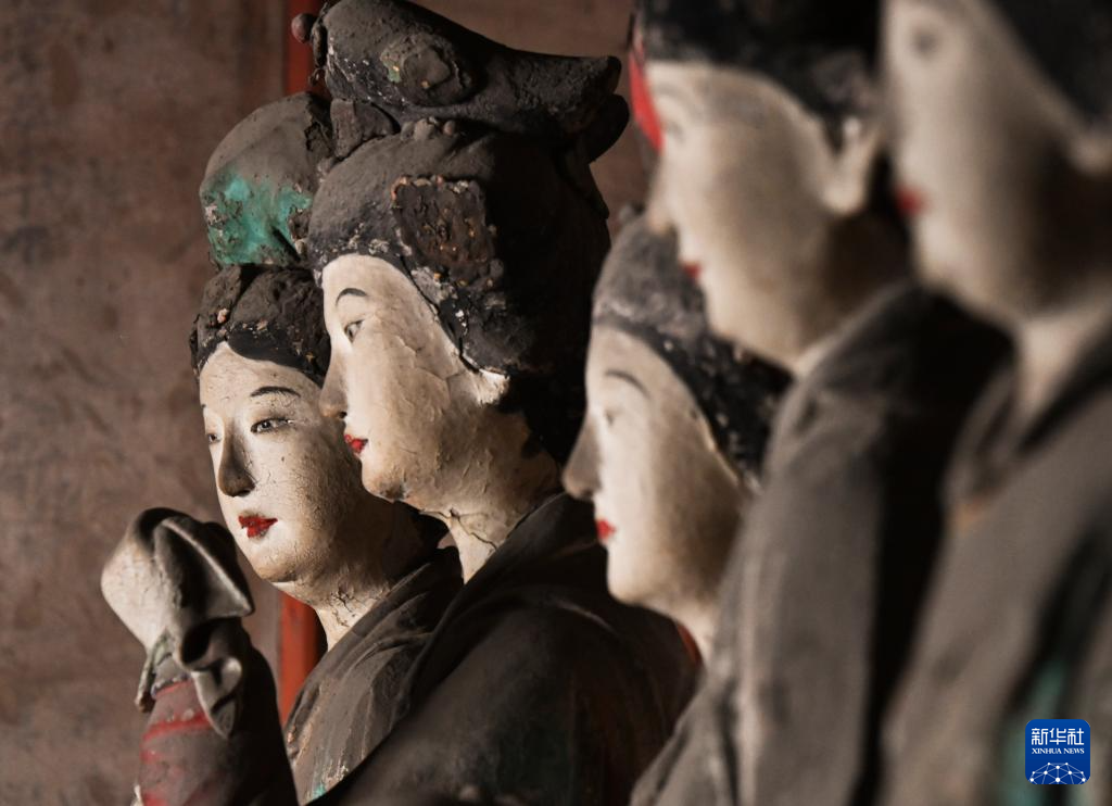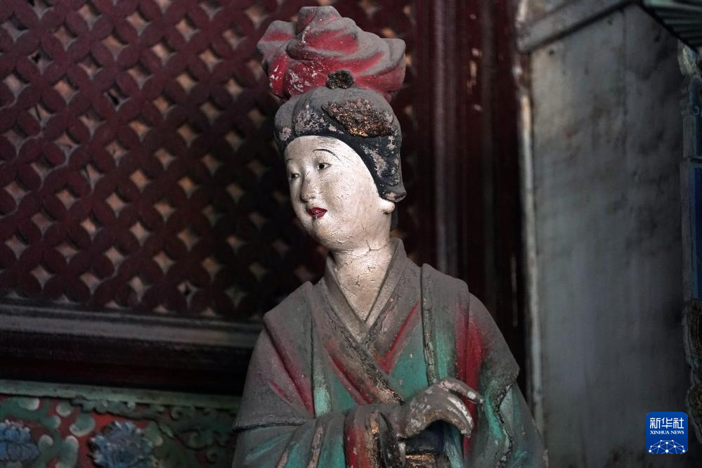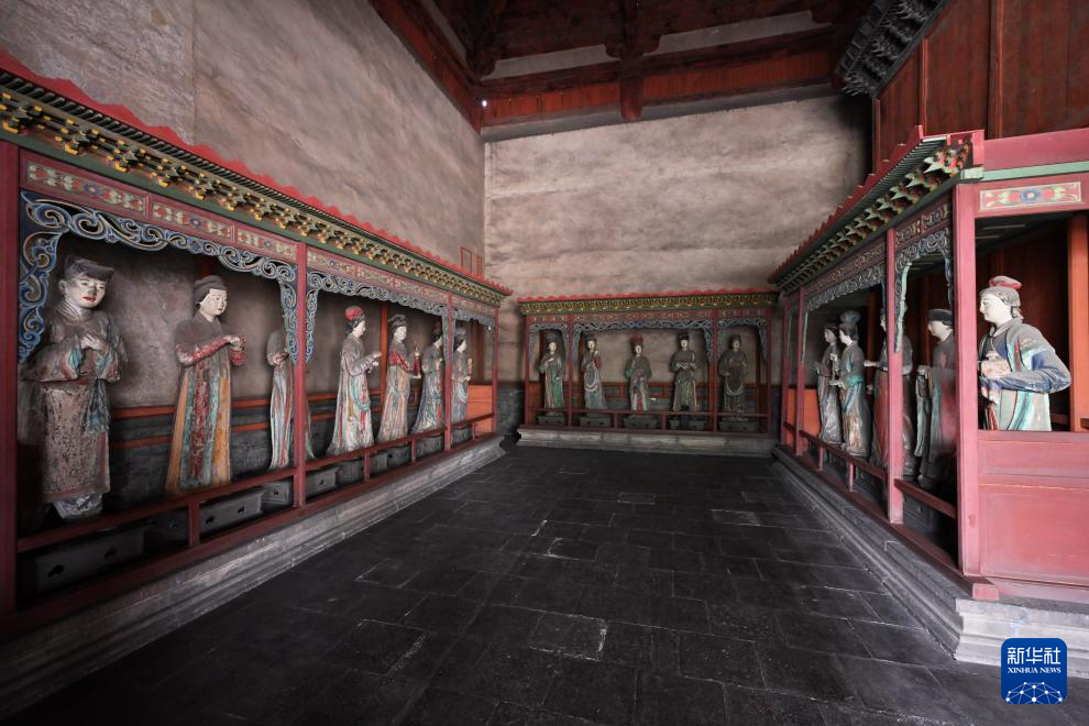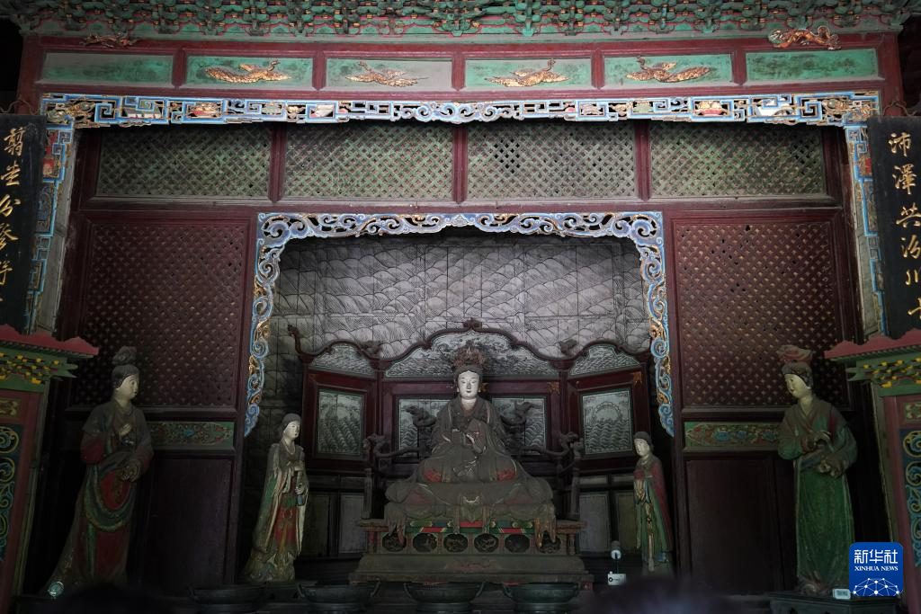 晋祠圣母殿内的宋代塑像(3月22日摄)。