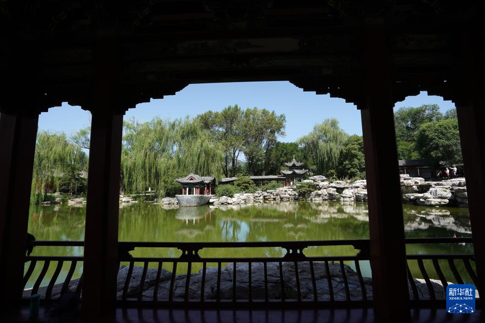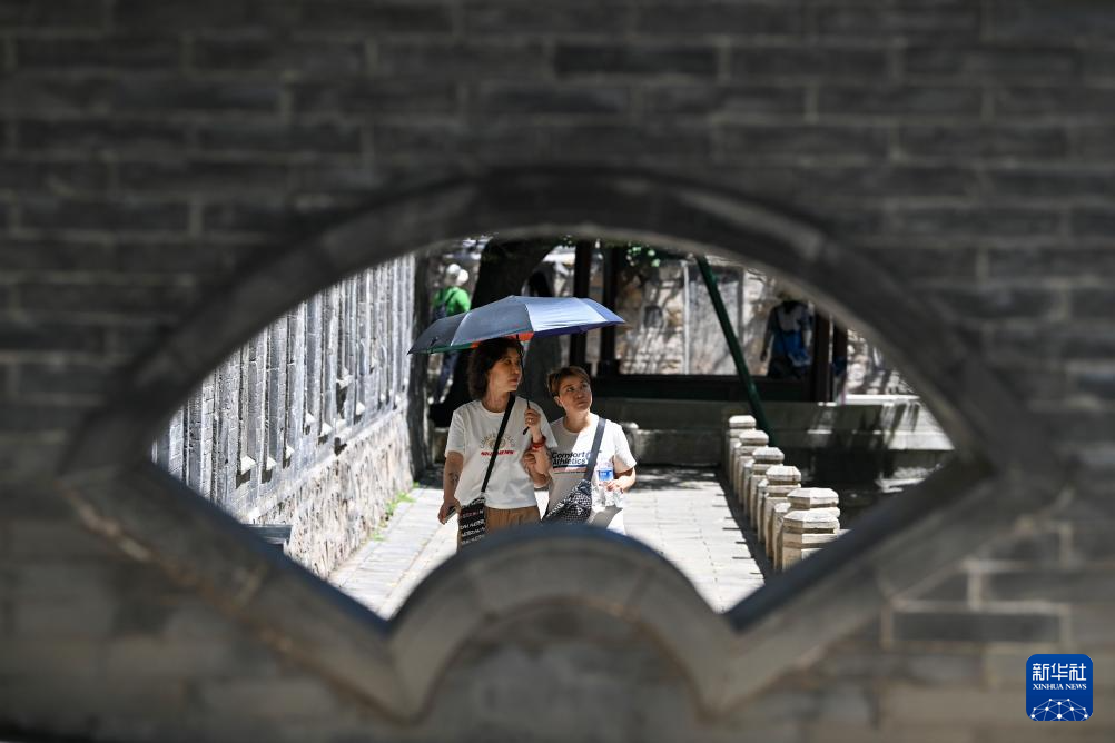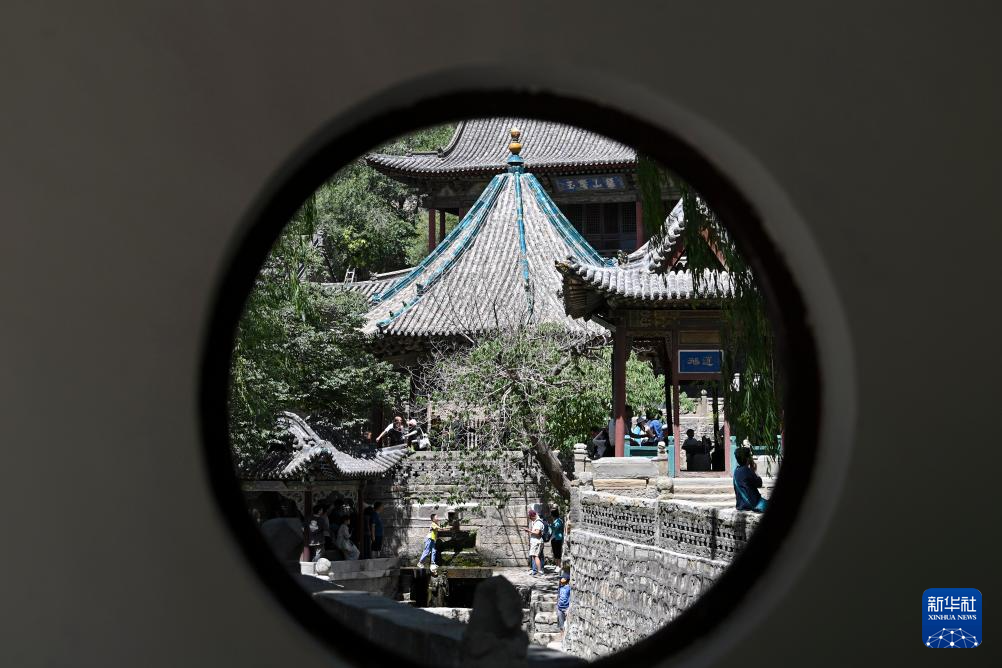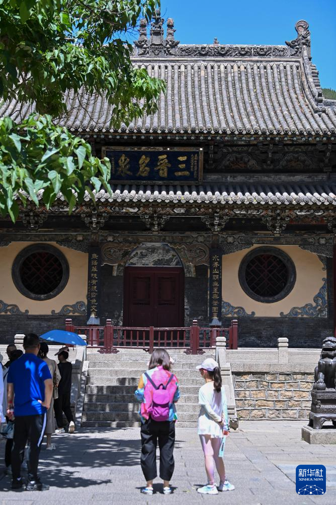 游客在晋祠游览(7月4日摄)。