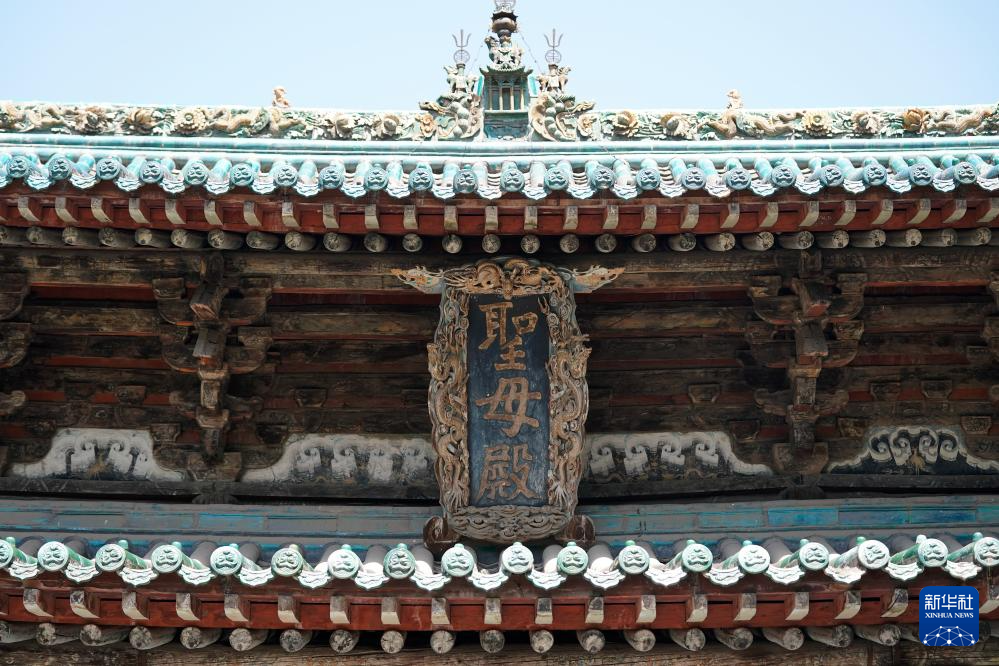 晋祠圣母殿牌匾(7月4日摄)。