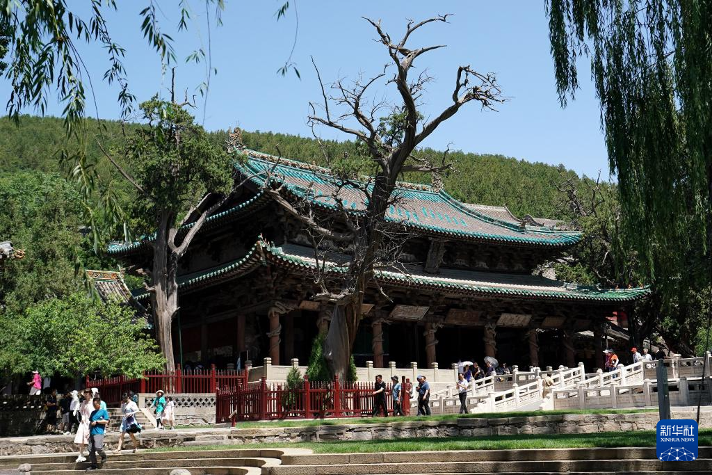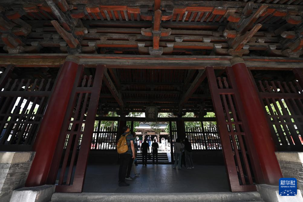 游客参观晋祠献殿(7月4日摄)。