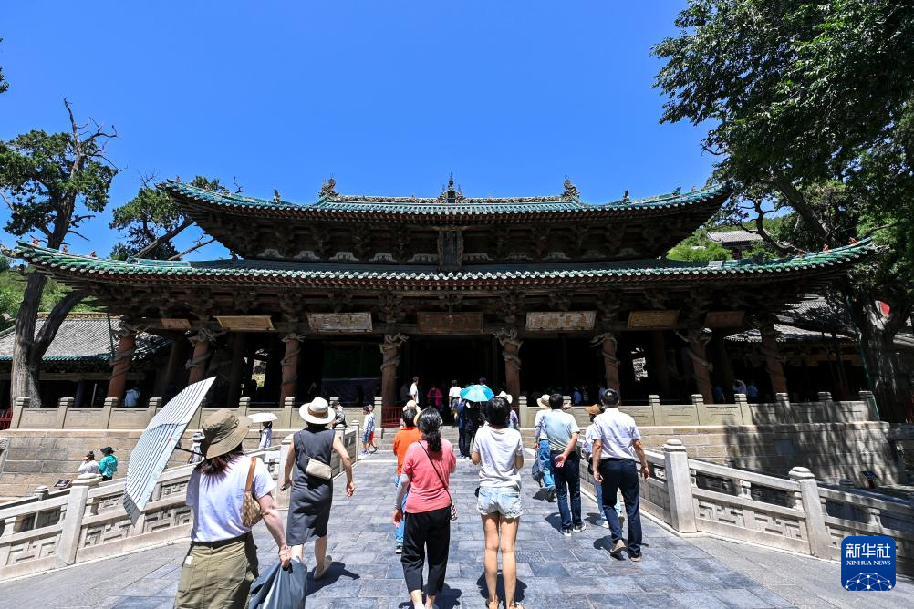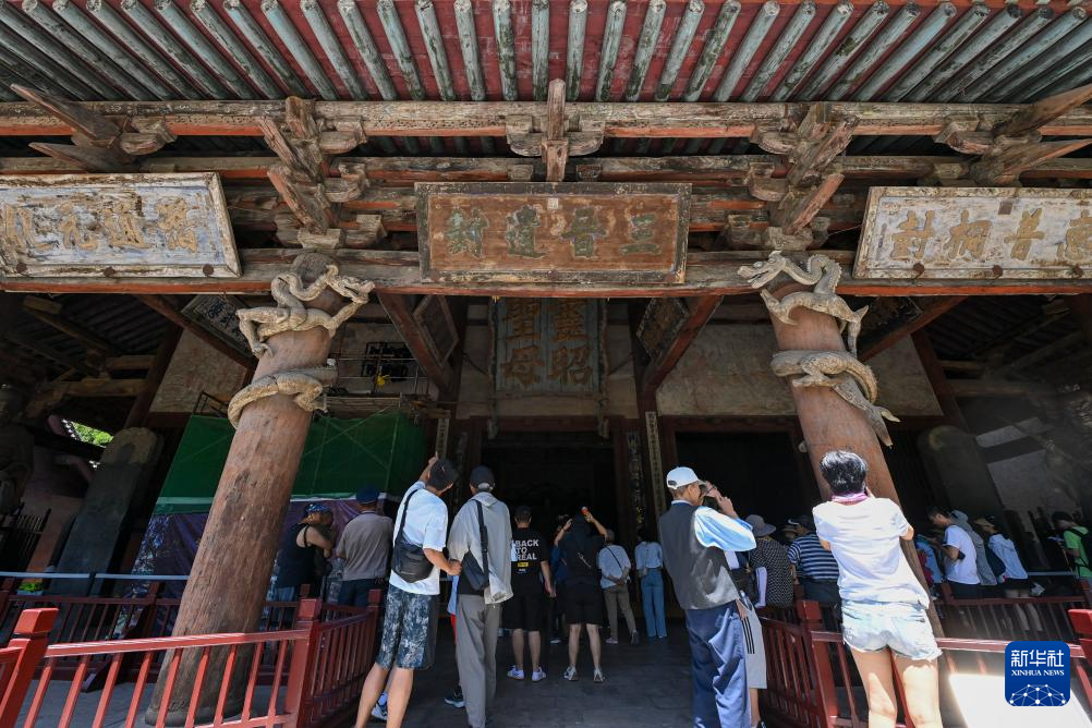 游客参观晋祠圣母殿(7月4日摄)。