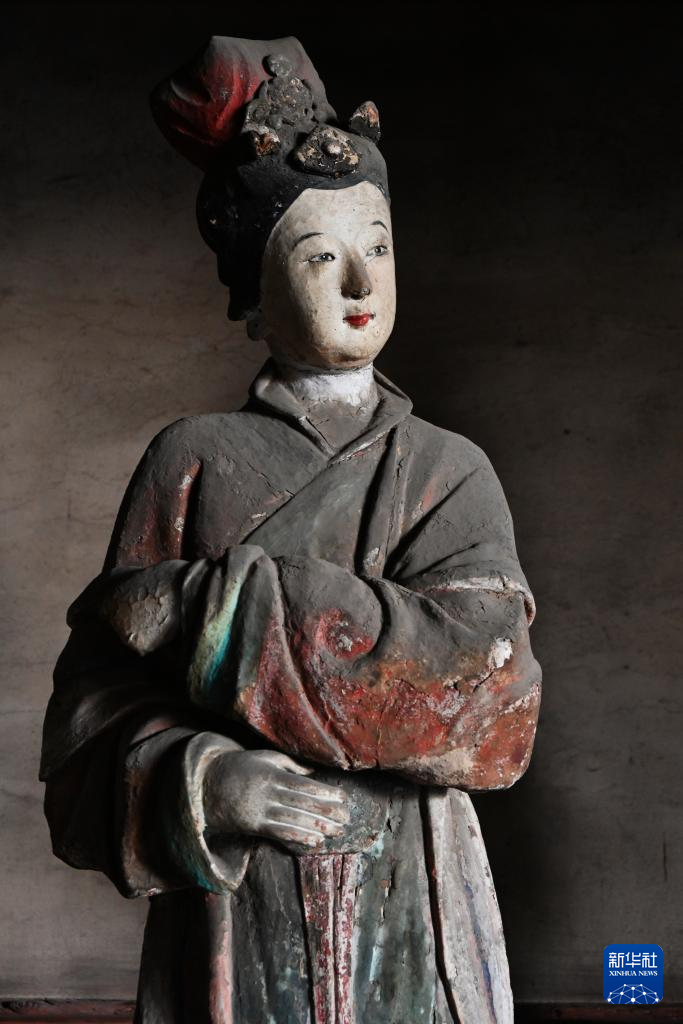 晋祠圣母殿内的宋代塑像(7月4日摄)。