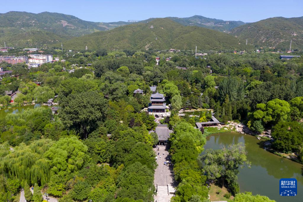 晋祠风景(7月4日摄,无人机照片)。