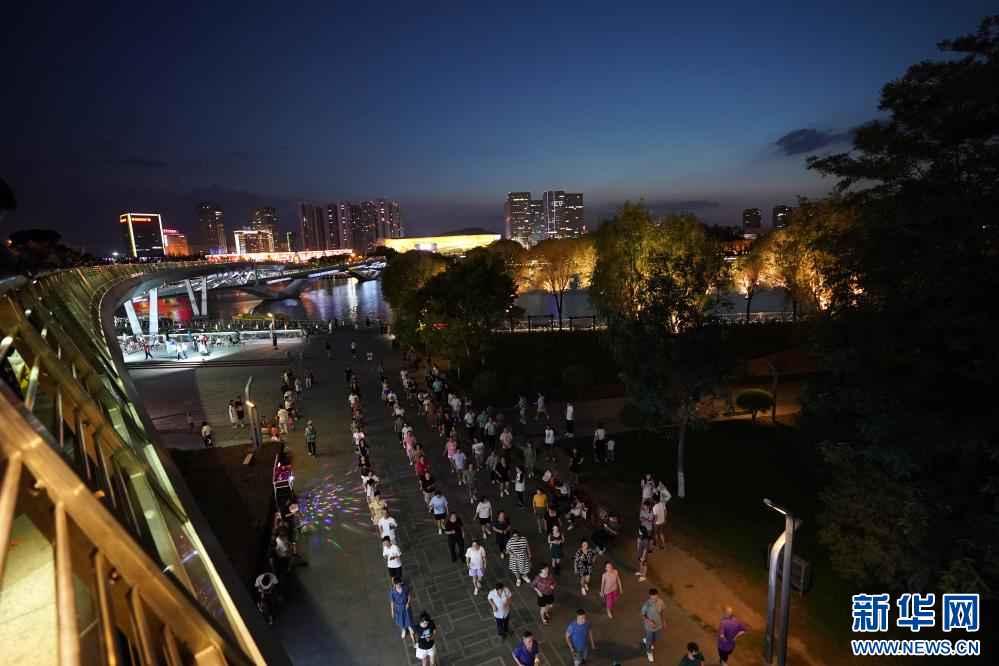 人们在太原市汾河景区跳舞(7月25日摄)。