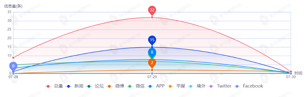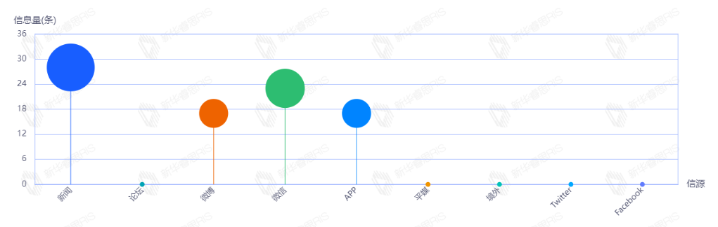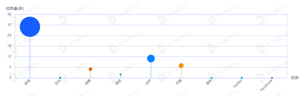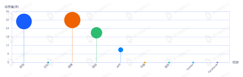 截至目前,該文章在互聯(lián)網(wǎng)上傳播總量共42篇。其中,7月29日是傳播的高峰期,共傳播32篇文章。各信源的信息發(fā)布情況中,新聞信息占比最大,其次是微信和APP,占比分別為38.10%、28.57%、26.19%。(數(shù)據(jù)來源:新華睿思數(shù)據(jù)云圖分析平臺(tái))