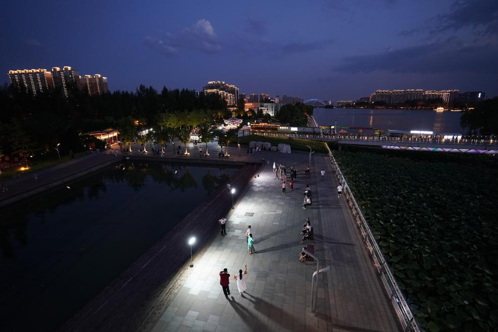近年來,山西省太原市不斷加強(qiáng)汾河生態(tài)環(huán)境治理與保護(hù)工作,并運(yùn)用環(huán)保節(jié)能光源加強(qiáng)汾河兩岸景觀亮化工程建設(shè)。每當(dāng)夜幕降臨,汾河及其兩岸燈光璀璨,成為市民和游人消夏納涼、夜游觀光的好去處。(新華社記者詹彥)