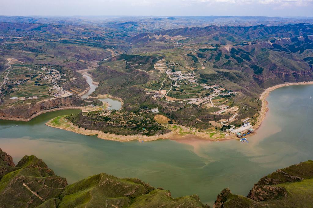 夏日,從空中俯瞰位于山西省和內(nèi)蒙古自治區(qū)交界處的黃河老牛灣,峽谷兩岸壁立千仞,黃河蜿蜒奔流不息,風(fēng)景壯美如畫。(新華社記者楊晨光)