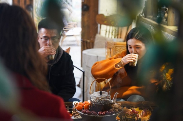 這間名為“山上喝茶”的小館,坐落在山西運城市區(qū)南端的山坡上,新中式風格的外觀、掩映在綠植中的卡座、文藝范兒的茶品和擺件,讓這里成為年輕人聚會、打卡的“新寵”。(新華社記者王皓、魏飚)