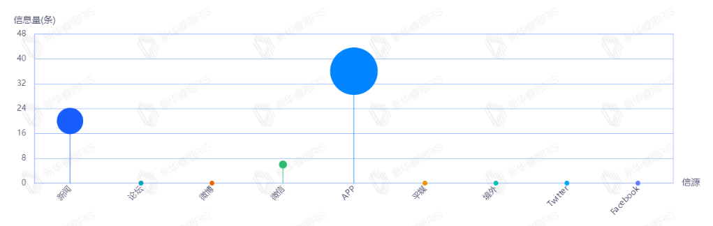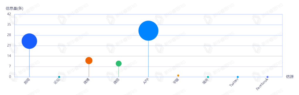 截至目前,該文章在互聯(lián)網(wǎng)上傳播總量45篇。其中8月25日是傳播的高峰期,共傳播42篇文章。各信源的信息發(fā)布情況中新聞信息占比最大,其次是APP和微信,占比分別為55.56%、42.22%、2.22%。(數(shù)據(jù)來源:新華睿思數(shù)據(jù)云圖分析平臺)