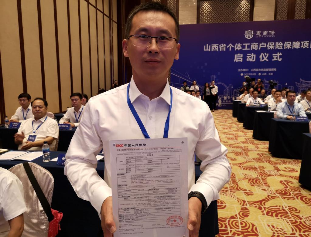 在山西太原迎澤區(qū)水西巷開汽修店的邢國忠,今天高興地領(lǐng)到了全省第一張個體工商戶“惠商?!北?。從8月29日起,山西在全省范圍內(nèi)為所有個體工商戶投保。