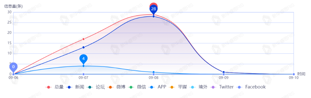 截至目前,該文章在互聯(lián)網(wǎng)上傳播總量共47篇。其中,9月8日是傳播的高峰期,共傳播29篇文章。各信源的信息發(fā)布情況中,新聞信息占比最大,其次是APP,占比分別為89.36%、10.64%。(數(shù)據(jù)來源:新華睿思·數(shù)媒智慧分析平臺)