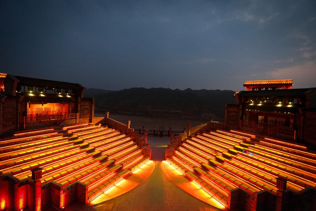 这是一场别样的演出,山水和风情在剧场里交相辉映。在“九曲黄河第一镇”的碛口岸边,在黄土高原吕梁山脉的怀抱里,观众坐在360度的露天旋转观演台上,高科技舞台技术和灯光投影矩阵的加持下,现代演艺手段和传统文化相互融合。演员表演生动投入,将黄河文化、晋商文化、民俗文化、红色文化润于观众心中。