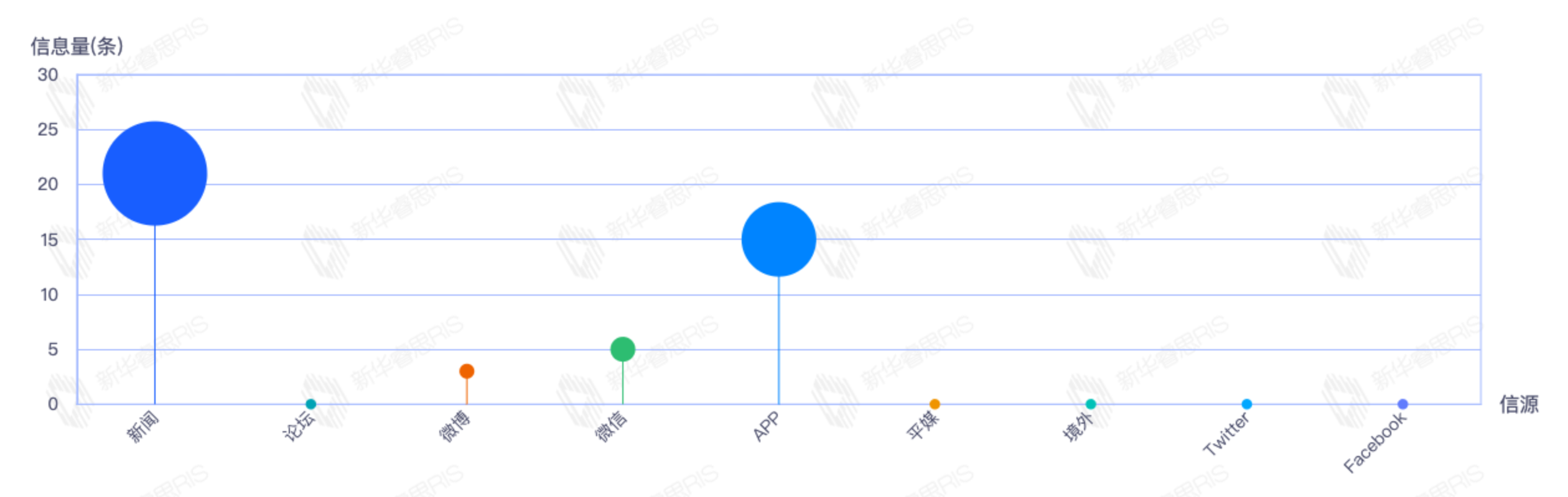 截至目前,該文章在互聯(lián)網(wǎng)上傳播總量共53篇。其中,11月15日是傳播的高峰期,共傳播31篇文章。各信源的信息發(fā)布情況中,其中新聞信息占比最大,其次是APP和微信,信息量分別為21、15、5,占比分別為47.73%、34.09%、11.36%。(數(shù)據(jù)來源:新華睿思·數(shù)媒智慧分析平臺(tái))