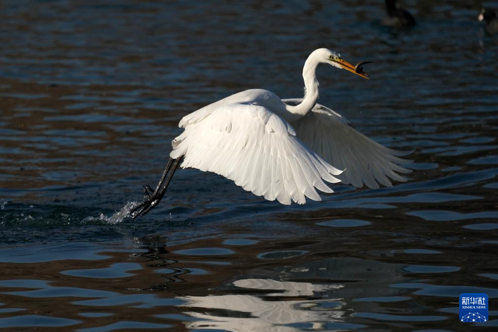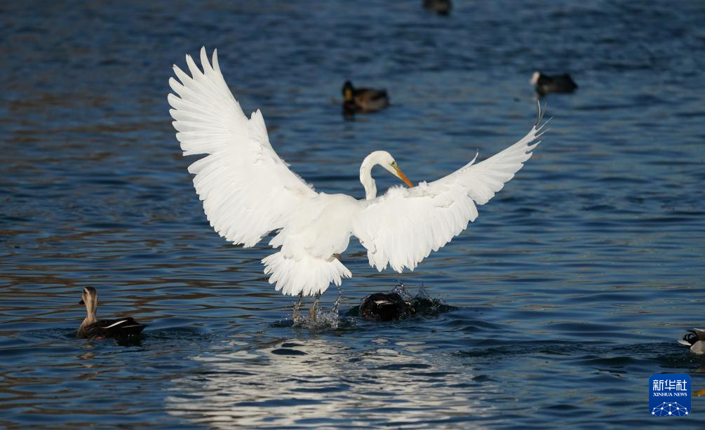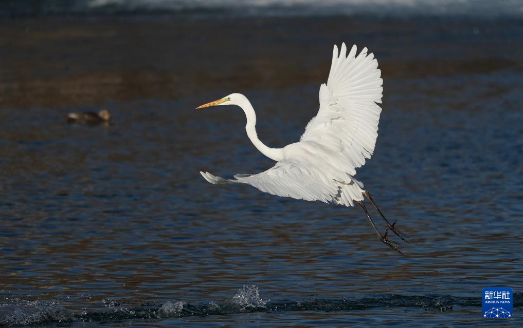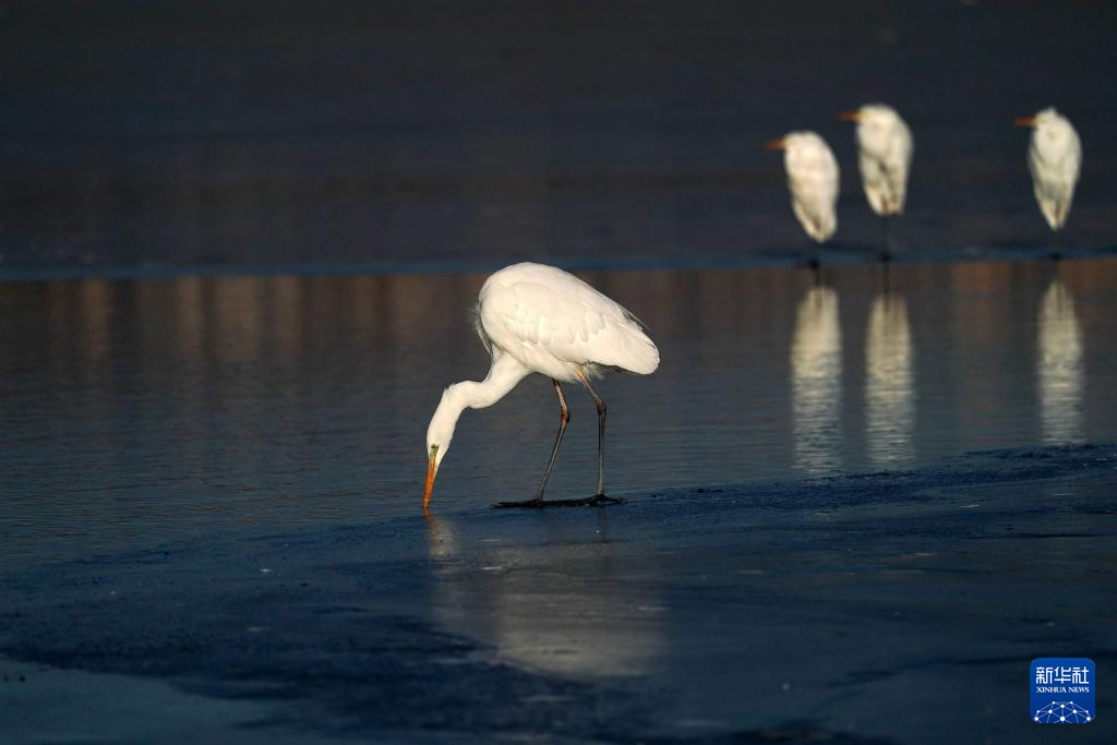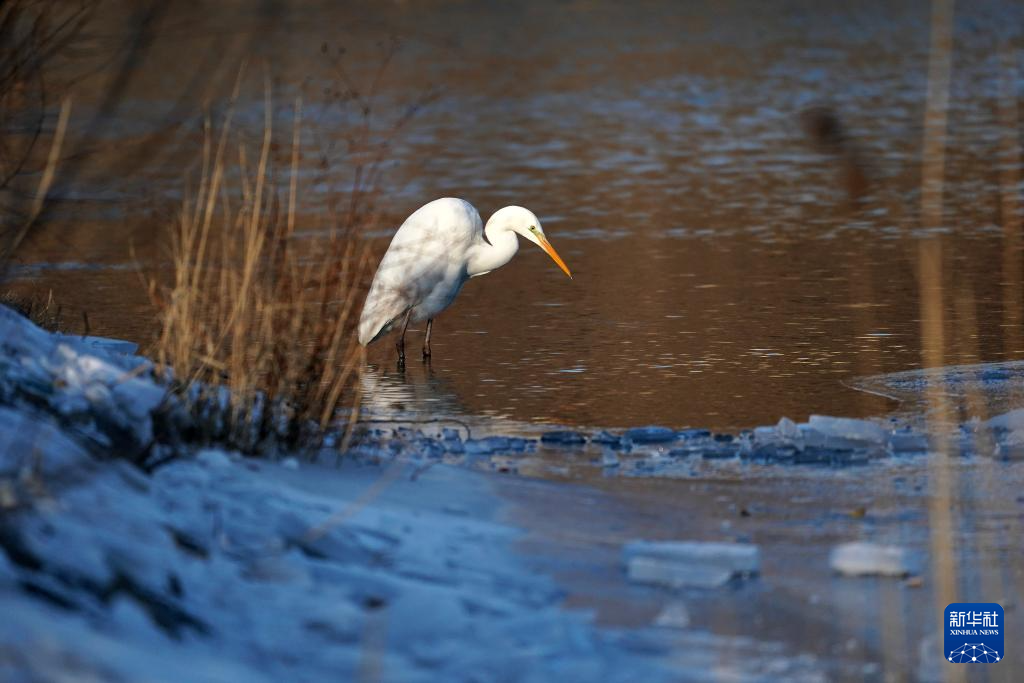 1月3日,在山西太原,白鹭在汾河觅食。