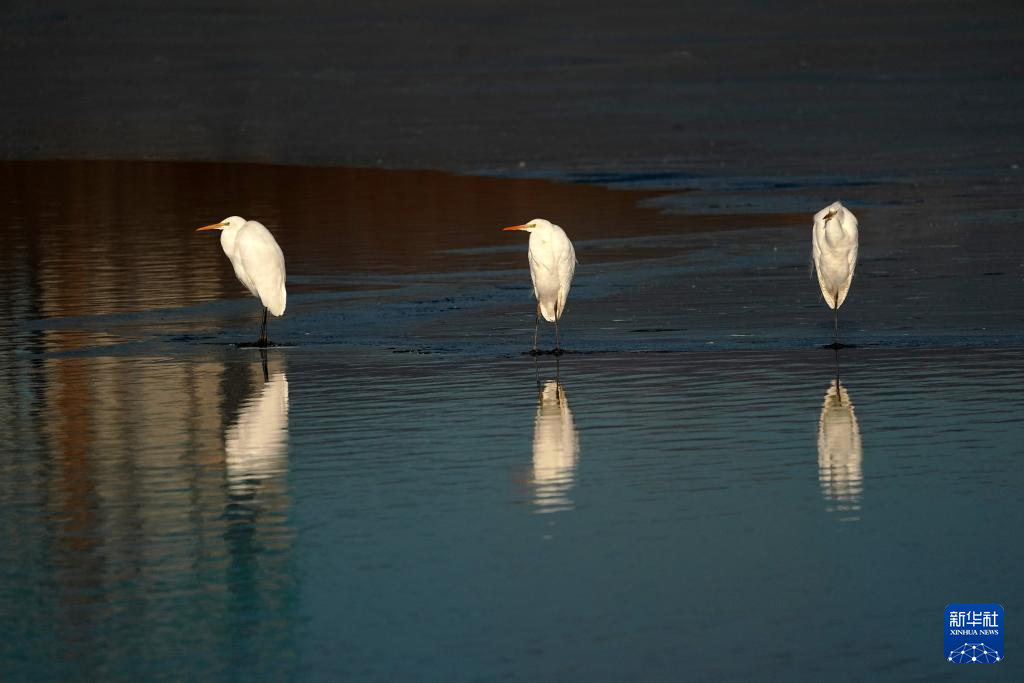 1月3日,在山西太原,白鹭在汾河栖息。