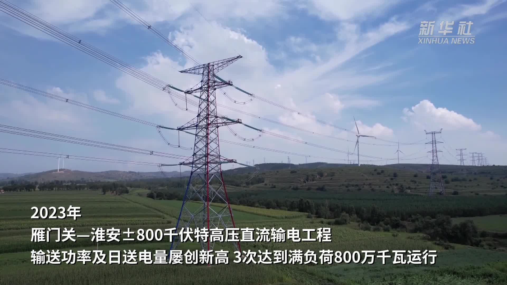 近日,記者從國(guó)網(wǎng)山西省電力公司了解到,2023年,“晉電下江南”輸電通道雁門關(guān)—淮安±800千伏特高壓直流輸電工程全年輸送電量467億千瓦時(shí),同比增長(zhǎng)超四分之一。(新華社記者原勛)