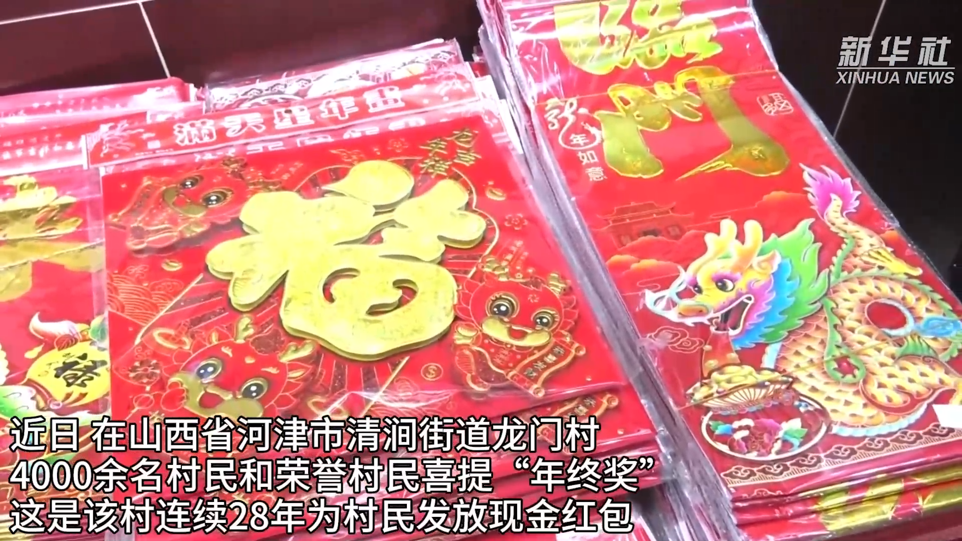 近日,在山西省河津市清澗街道龍門村,4000余名村民和榮譽(yù)村民喜提“年終獎(jiǎng)”,這是該村連續(xù)28年為村民發(fā)放現(xiàn)金紅包。(新華社記者魏飚、王皓)