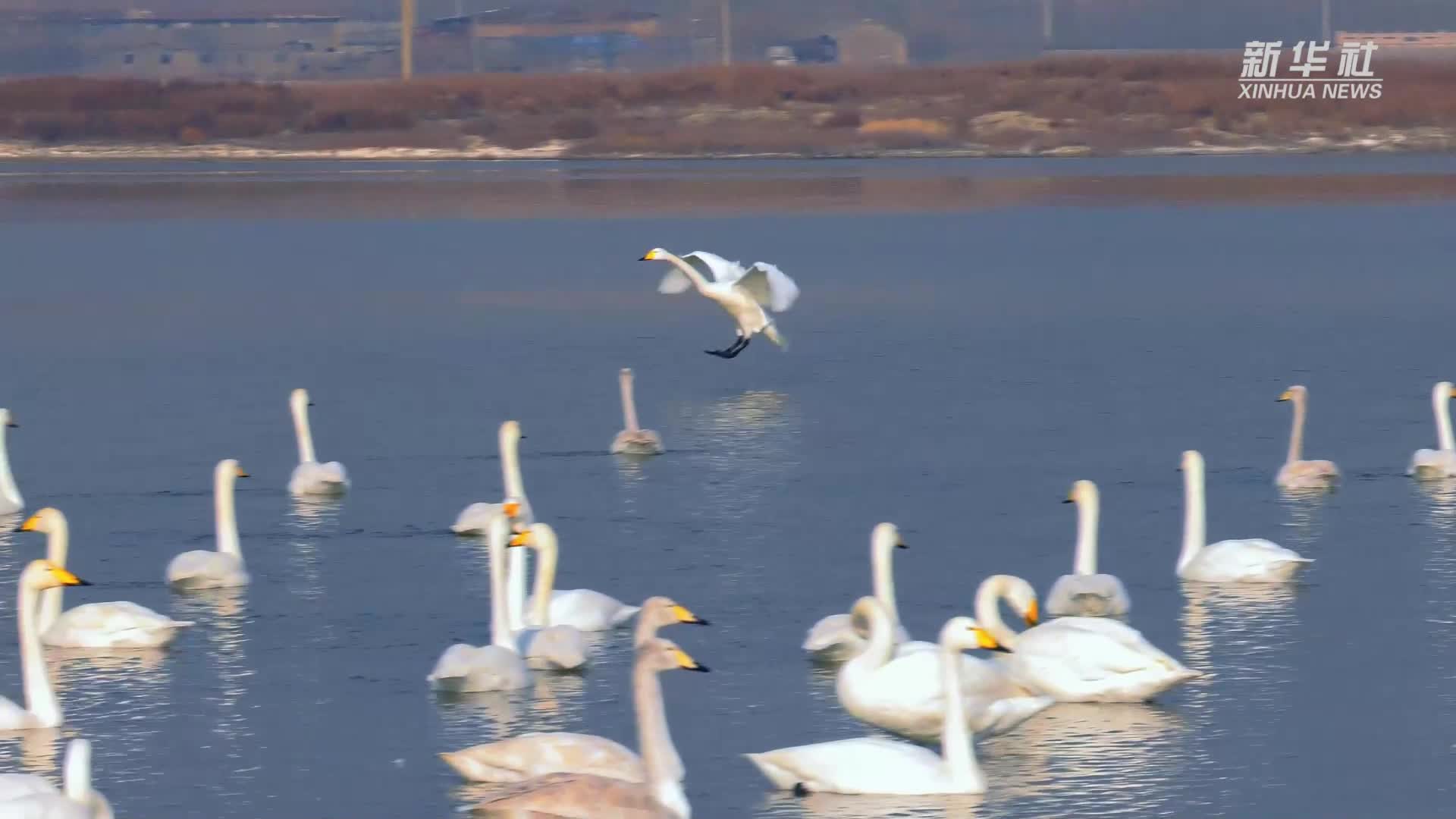 在經(jīng)歷了三年多時(shí)間的“退鹽還湖”之后,位于山西省南部的運(yùn)城鹽湖生態(tài)環(huán)境持續(xù)改善,來(lái)這里棲息越冬的白天鵝越來(lái)越多。寒冬時(shí)節(jié),美麗的白天鵝在運(yùn)城鹽湖里嬉戲玩鬧,或在鹽湖上空比翼翱翔,為冬日的鹽湖增添了勃勃生機(jī)和詩(shī)意。(新華社記者王飛航)