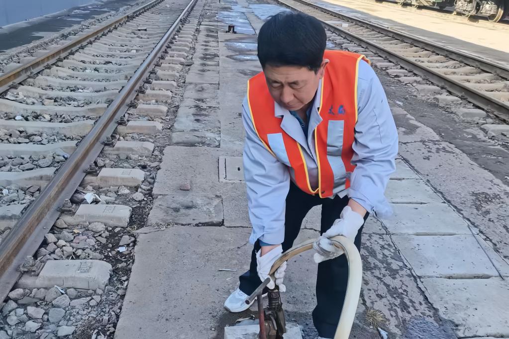 弯腰、拉管、插管、注水、拔管,这组动作他们要重复3个小时。晋北大同的冬夜,股道上结了厚厚一层冰,在上面正常行走都很困难,但他们要拖着十几米长、十多斤重的注水管,不停地往返在各车厢间。