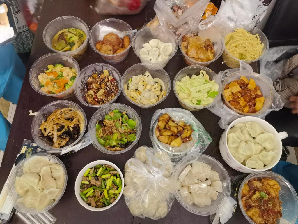 值班的医护人员从家带来的饭菜。(受访者供图)