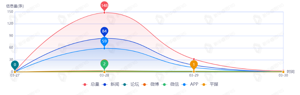截至目前,該文章在互聯網上傳播總量183篇。其中3月28日是傳播的高峰期,共傳播148篇文章。各信源的信息發(fā)布情況中,新聞信息和APP占比較大,分別為55.74%和38.25%。(數據來源:新華睿思數據云圖分析平臺)