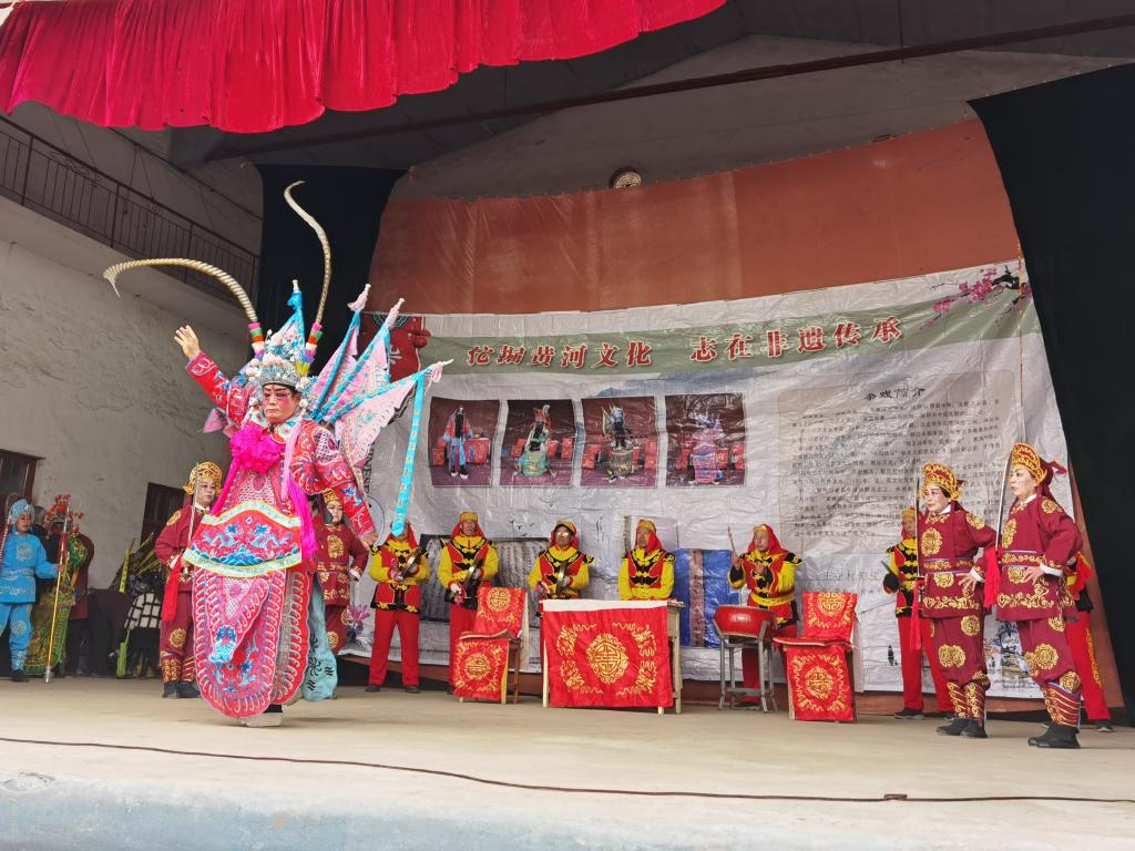 群山包圍之中,夫子嶺村戲臺上一曲夫子嶺弦腔《長壽山》贏得滿堂喝彩。(新華社記者王菲菲、馬曉潔、李子怡)