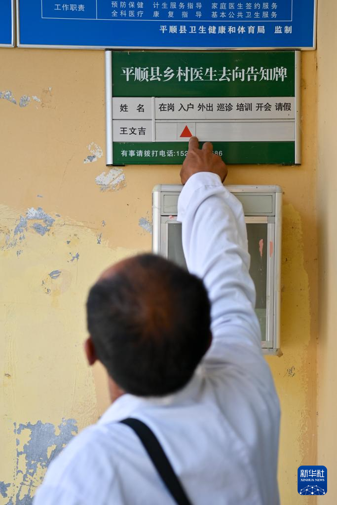 在平顺县东寺头乡七子沟村,王文吉出发前修改乡村医生去向信息(5月9日摄)。