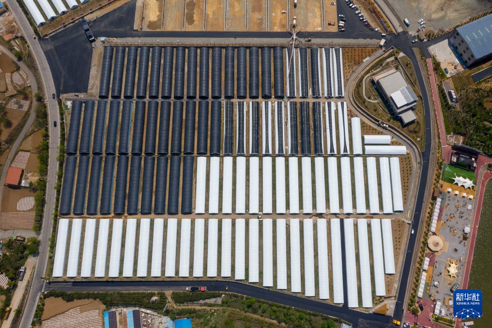 这是在平顺县龙溪镇龙镇村农旅产业融合发展示范园拍摄的香菇大棚(5月10日摄,无人机照片)。