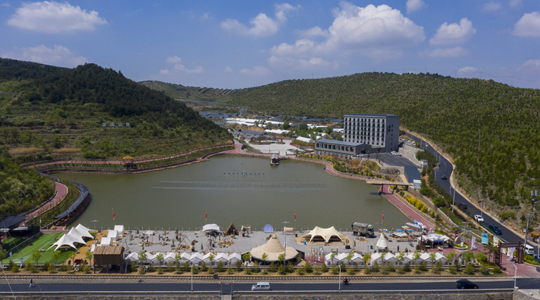 位于平顺县龙溪镇龙镇村的农旅产业融合发展示范园一景(5月10日摄,无人机照片)。