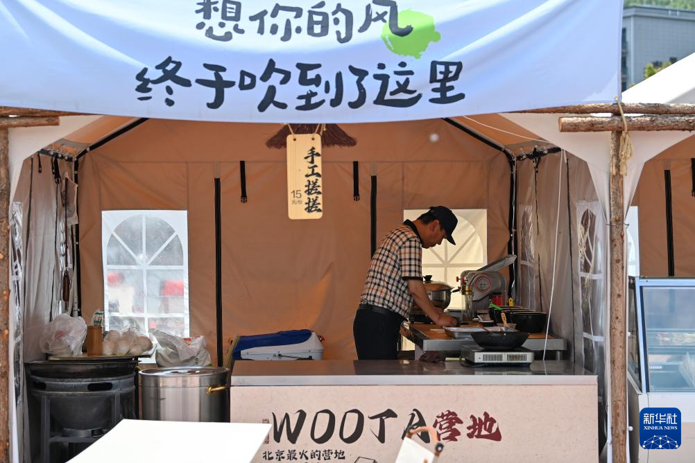 平顺县龙溪镇龙镇村农旅产业融合发展示范园小吃街,工作人员在准备食材(5月10日摄)。