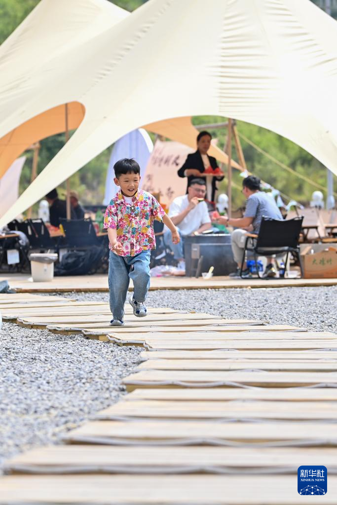 一名小朋友在平顺县龙溪镇龙镇村农旅产业融合发展示范园游玩(5月10日摄)。