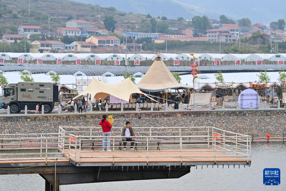 游客在平顺县龙溪镇龙镇村农旅产业融合发展示范园游览(5月10日摄)。