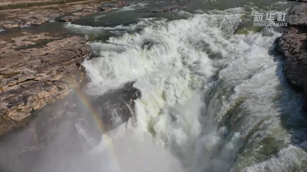 連日來,受上游干旱天氣影響,黃河干流晉陜大峽谷水量明顯減少,河水流速變緩,泥沙沉淀,使得位于山西吉縣和陜西宜川縣交界的黃河壺口瀑布再次出現(xiàn)“清流飛瀑”景觀。在陽光的照射下,“清流飛瀑”與“彩虹橋”同框的特有自然景觀吸引了眾多游客。(新華社記者鄧浩然)