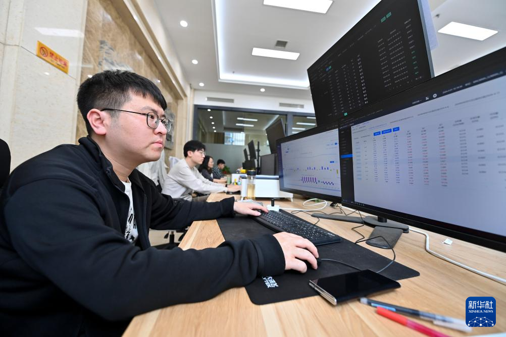 在山西省太原市小店区,晋控电力的电力交易员在电脑前工作(2024年4月1日摄)。新华社记者 杨晨光 摄