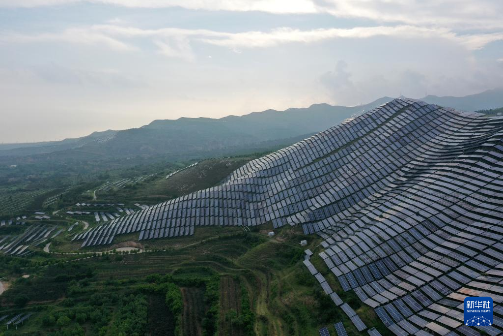 这是在山西省芮城县学张乡拍摄的光伏电站(无人机照片,2023年7月12日摄)。新华社记者 詹彦 摄