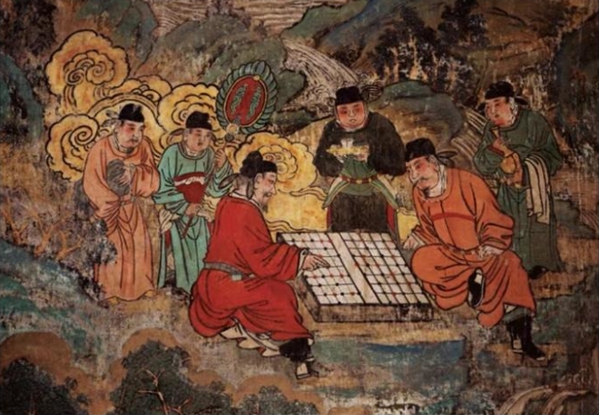 广胜寺水神庙元代壁画《下棋图》。马毅敏摄