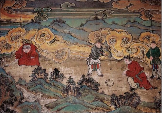 广胜寺水神庙元代壁画《捶丸图》。马毅敏摄