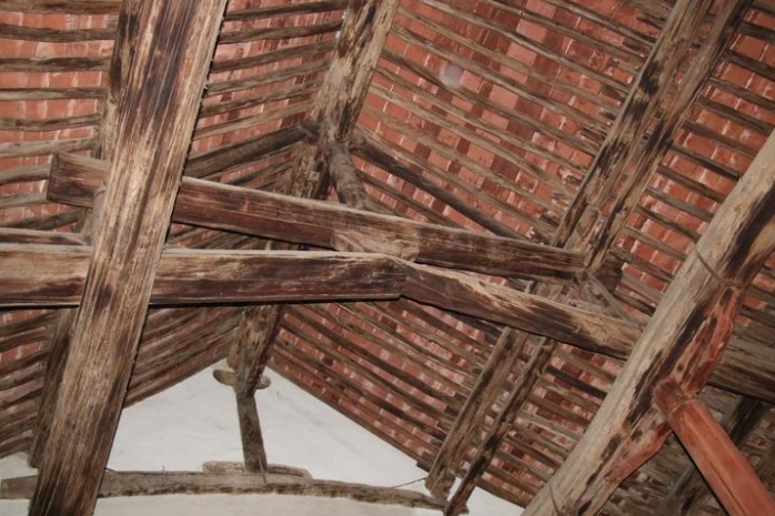 广胜寺下寺前佛殿人字形斜梁。武庆庆摄