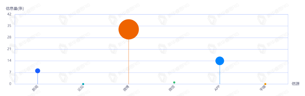 截至目前,該文章在互聯(lián)網(wǎng)上傳播總量129篇。其中7月18日是傳播的高峰期,共傳播106篇文章。各信源的信息發(fā)布情況中,微博占比最大,其次是新聞和APP,占比分別為32.56%、30.23%、24.81%。(數(shù)據(jù)來(lái)源:新華睿思數(shù)據(jù)云圖分析平臺(tái))