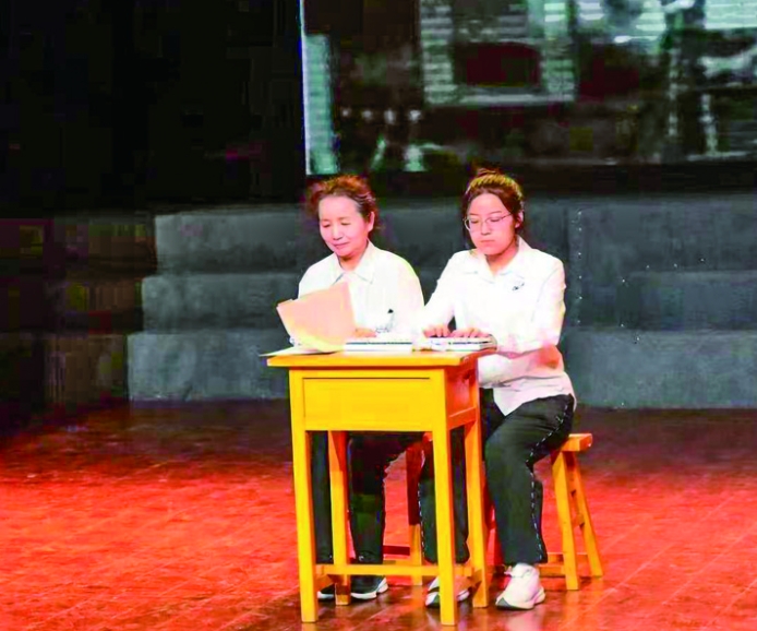 张计玲给记者看了一段短视频,小组作业汇报时,张计玲坐在队伍的第一排,她的一曲红色老歌和谐地穿插在年轻人的流行歌曲中,每个人都边笑边唱。