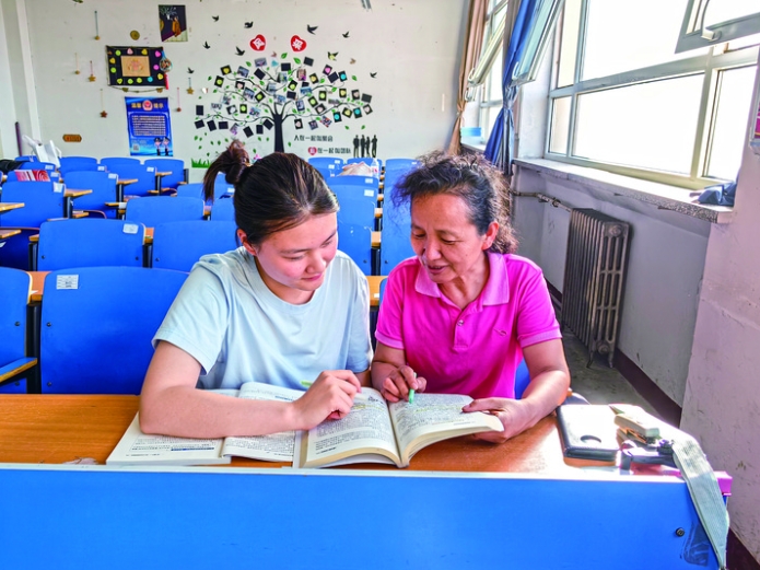 张计玲还潜移默化地改变了班里的同学。同学马艺榕说,每次不想学了,抬头看到坐在第一排认真学习的阿姨,就又打起了精神。