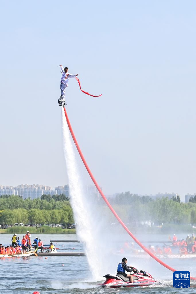 演员在太原市水上运动中心进行“水上飞人”表演(6月10日摄)。