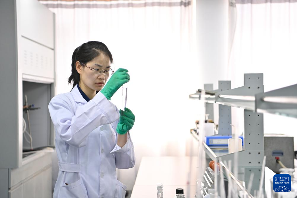 在位于太原市杏花岭区的一家检测机构,工作人员对汾河水样进行分析(7月4日摄)。