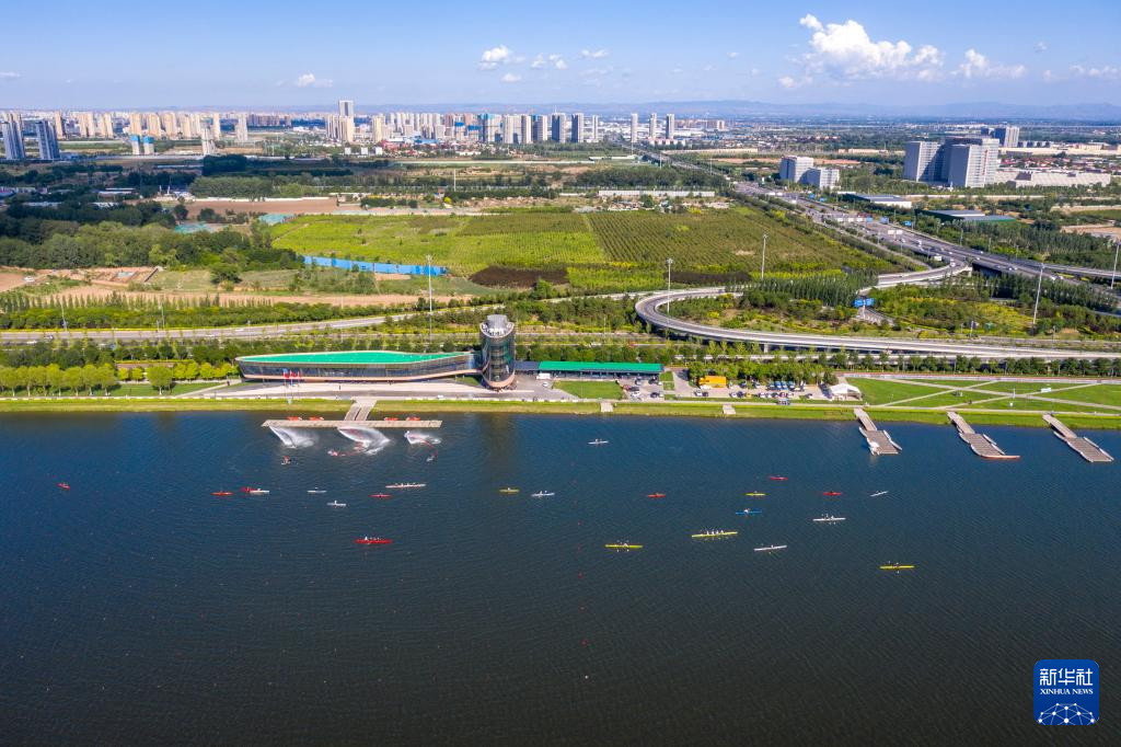 这是位于汾河太原城区段的太原市水上运动中心(6月7日摄,无人机照片)。