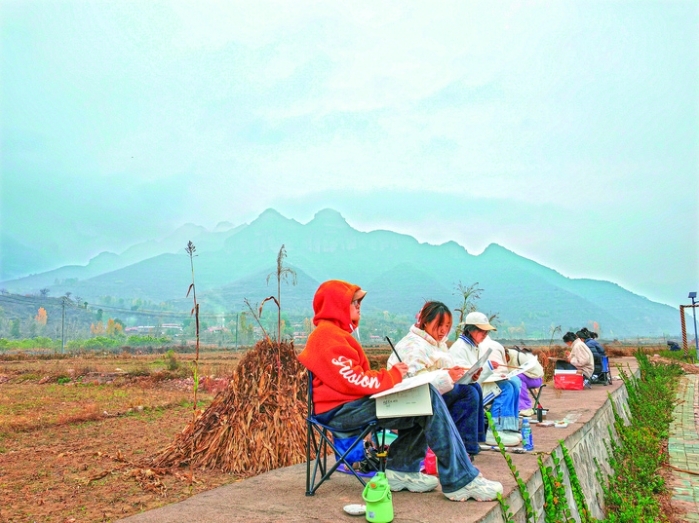 虽然已时近立冬,但来自晋中学院的一百多名师生仍坚持每天外出写生。“这里是太行山中段最雄美的地方,来到这里可以让学生们接受大自然的洗礼,同时感受地方文化,让他们积累创作素材的同时了解农村、热爱农村。”晋中学院国画老师孟冠华说。