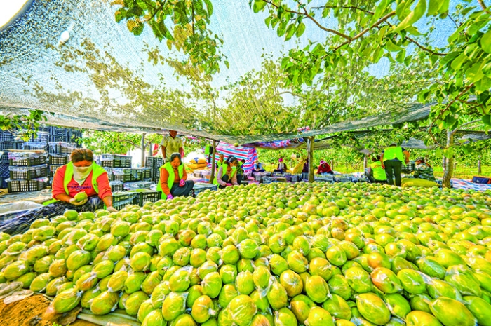 “十万元户在俺们村多的是,大概能占到一半。”村支书刘志锋告诉记者,全村571户村民,有大约八成人口搞梨果产业,平均每户种植面积达到5亩。2023年,全村梨果产业产值达到896万元,来源于农业产业的户均收入约为9万元。