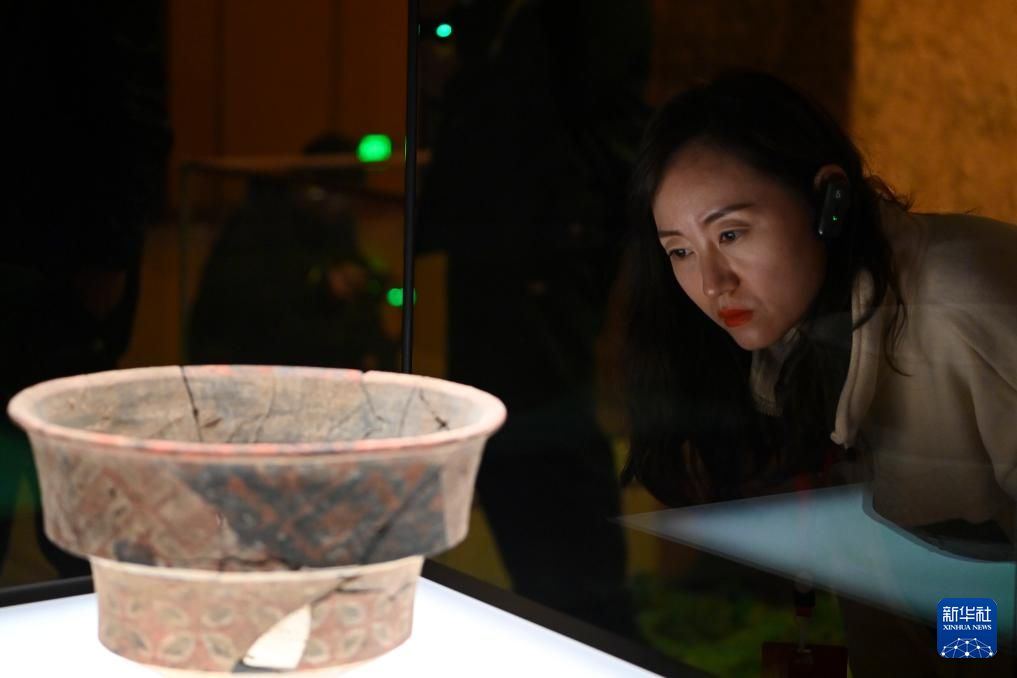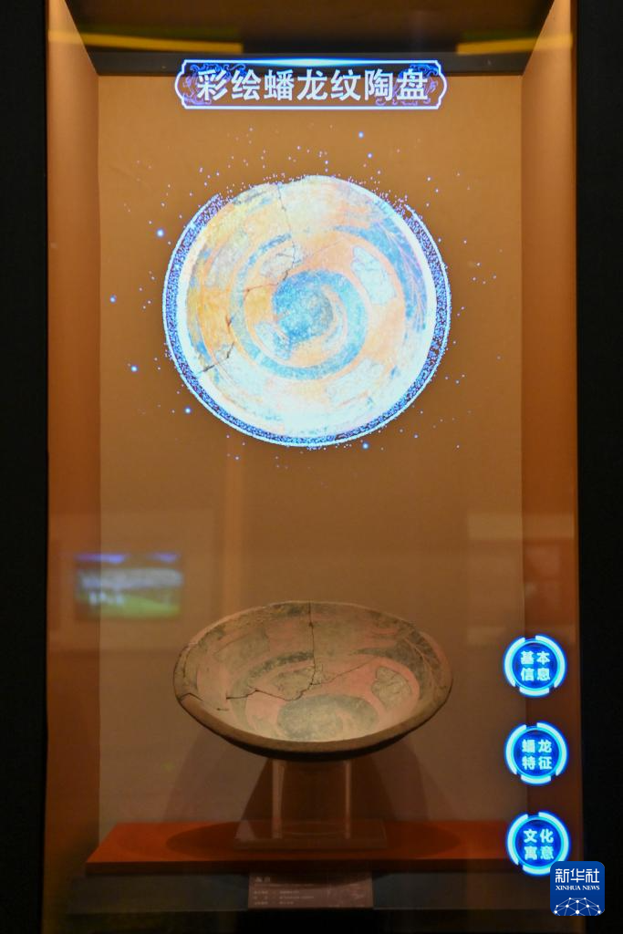 这是在陶寺遗址博物馆展出的彩绘蟠龙纹陶盘(11月12日摄)。